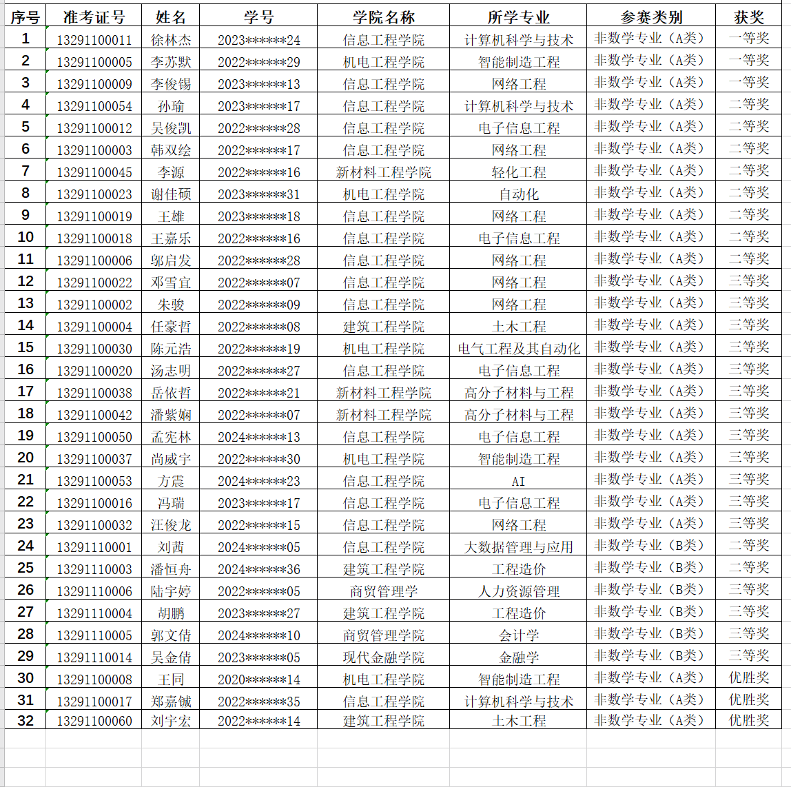 我校学生在2025年度全国高等数学竞赛中获得佳绩