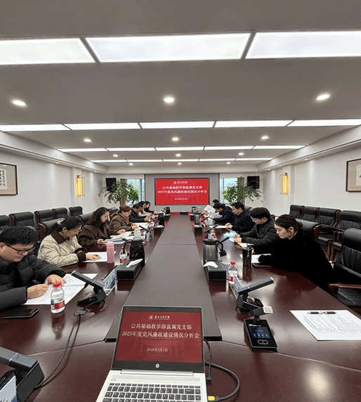 3月5日下午,公共基础教学部召开2025年度党风廉政建设分析会。直属党支部书记何爱华主持会议,党政班子成员和教师党员代表参加会议,校党委书记倪沪平到会指导并讲话。